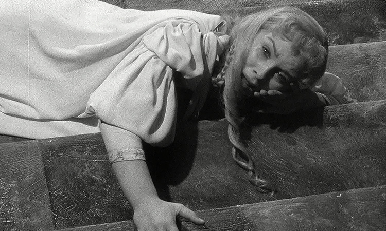 The contradictions and ambiguities of the title character, who prowls cavernous sets filled with vast ancient corridors and winding staircases, emerge as if from a dream. The black-and-white imagery wondrously enhances the mood, giving the tragedy the perfect atmosphere of a ghost story, while a cast of renowned British actors with the energy and seriousness necessary to appropriately convey the calamitous plot brilliantly delivers the dialogue.